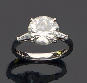 solitaire ring in white gold, 750 MM, adorned with a brilliant cut diamond weighing 3.40 carats approximately between two trapez