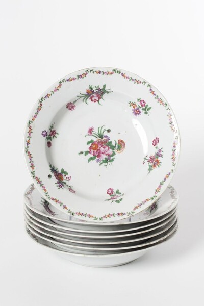 Suite de trente assiettes, Chine, Compagnie des Indes, XVIIIe s