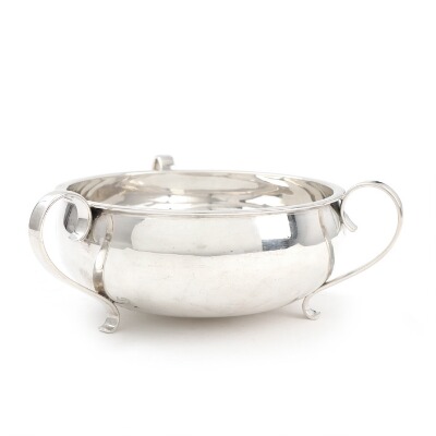 A sterling silver Art Deco bowl with three handles