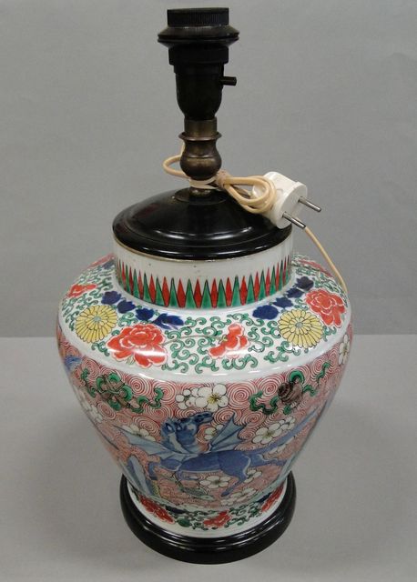 Table Lamp base, China polychrome decorated with horses