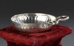 En argent, à décor de godrons, la prise en forme de serpent. Poinçon de décharge sur l’appui-pouce. Poids 91 g
