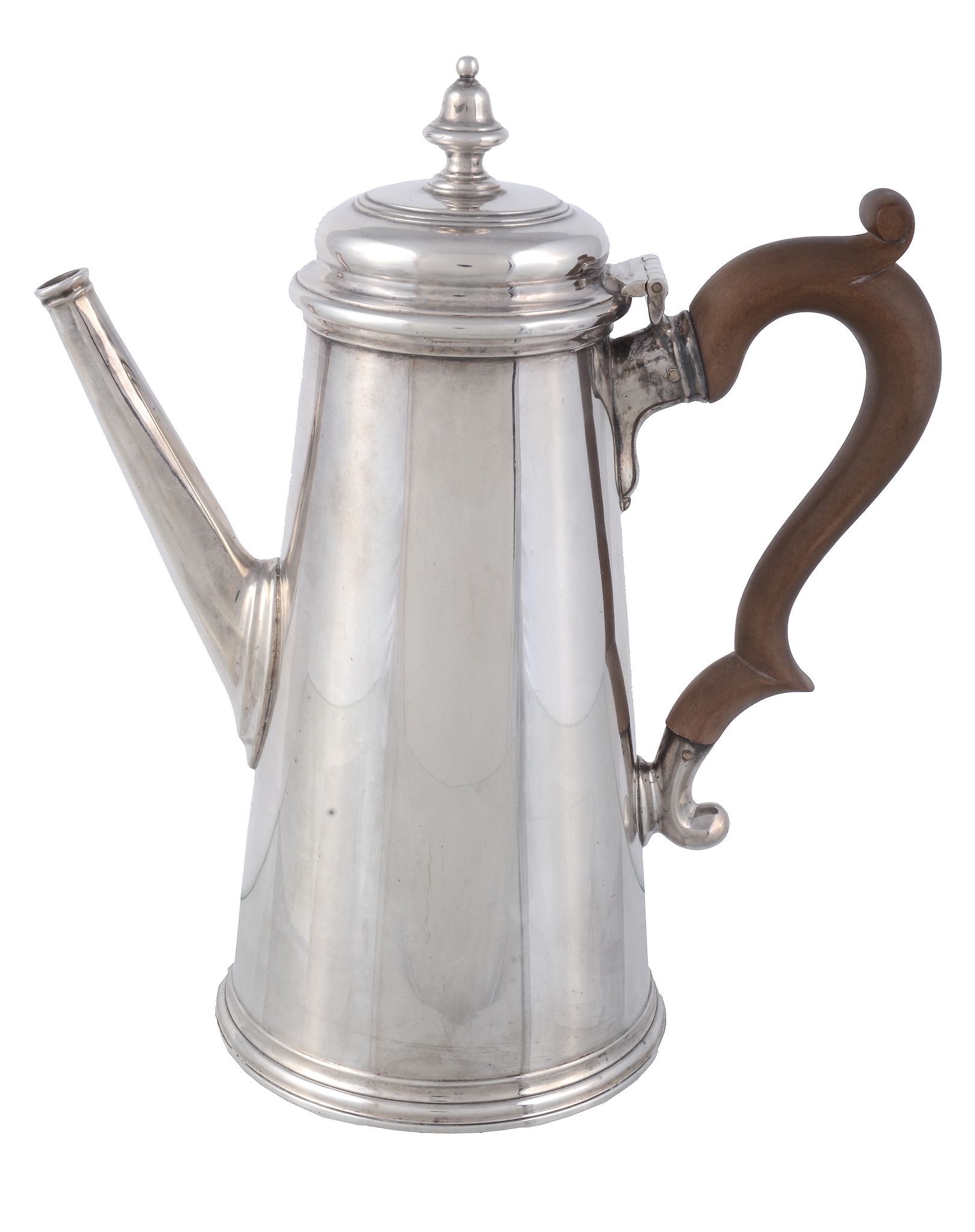 with a stepped domed cover, a composition scroll handle and a moulded foot, 24cm (9 1/2in) high, 715g (23 oz) gross