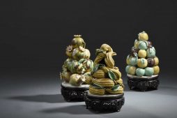 Trois pyramides de fruits en porcelaine, Chine, époque Kangxi, début du XVIIe siècle