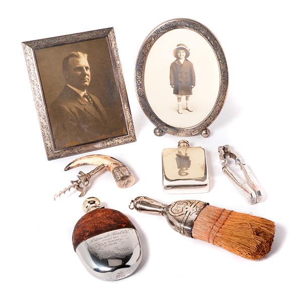 Two Flasks, including an English with sterling hallmarks and marked Leif Henie, the other a leather and plated trophy for the "Portsmouth Road C.C. 5 Mile Scratch on 7th July 1894 (Awarded to) Wilhelm Henie"; a Sterling Mounted Horn Cork Screw; a 191