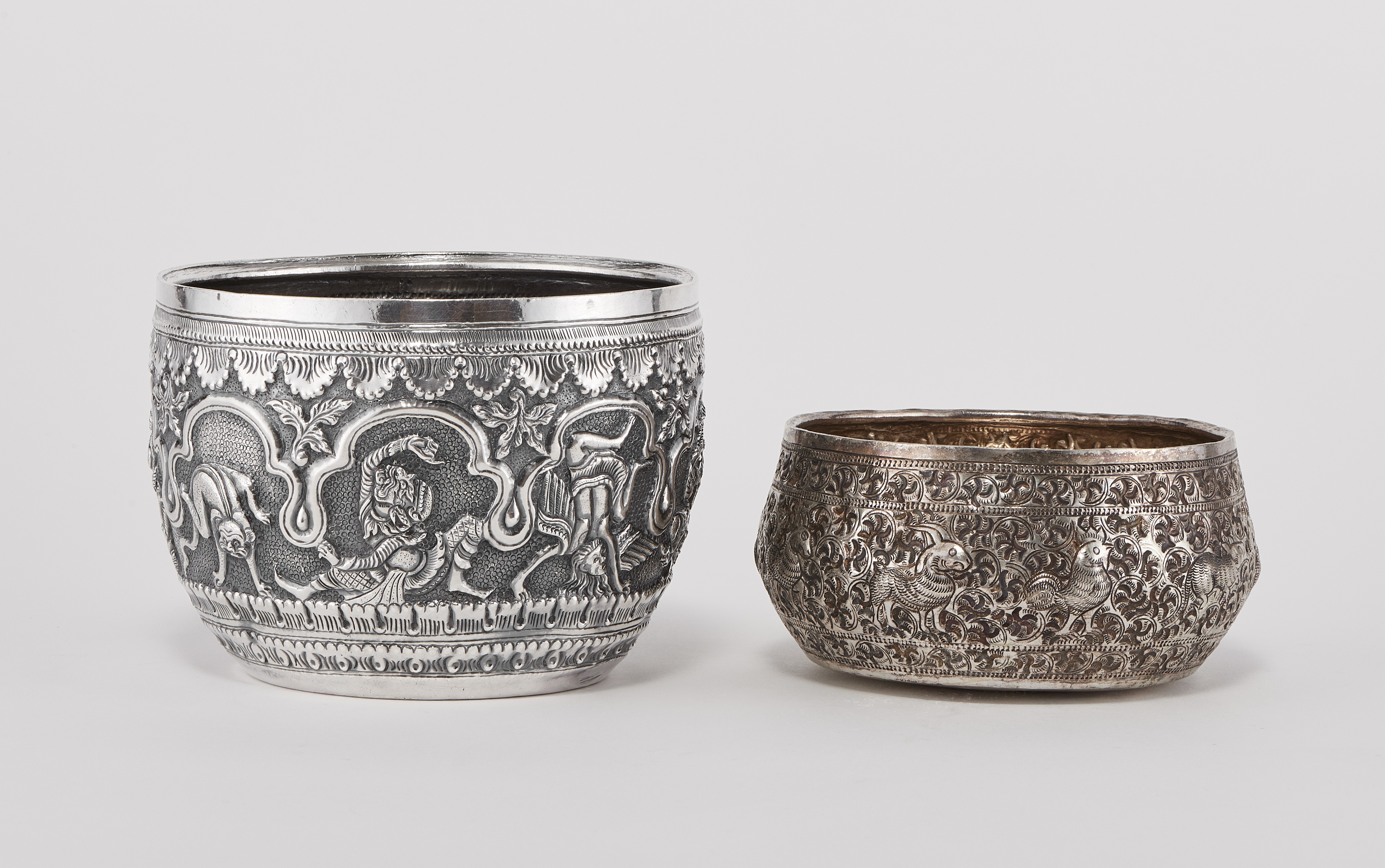 Silver with repousse decoration of dancers and zodiac signs, 370 g, D 10 and 12 cm