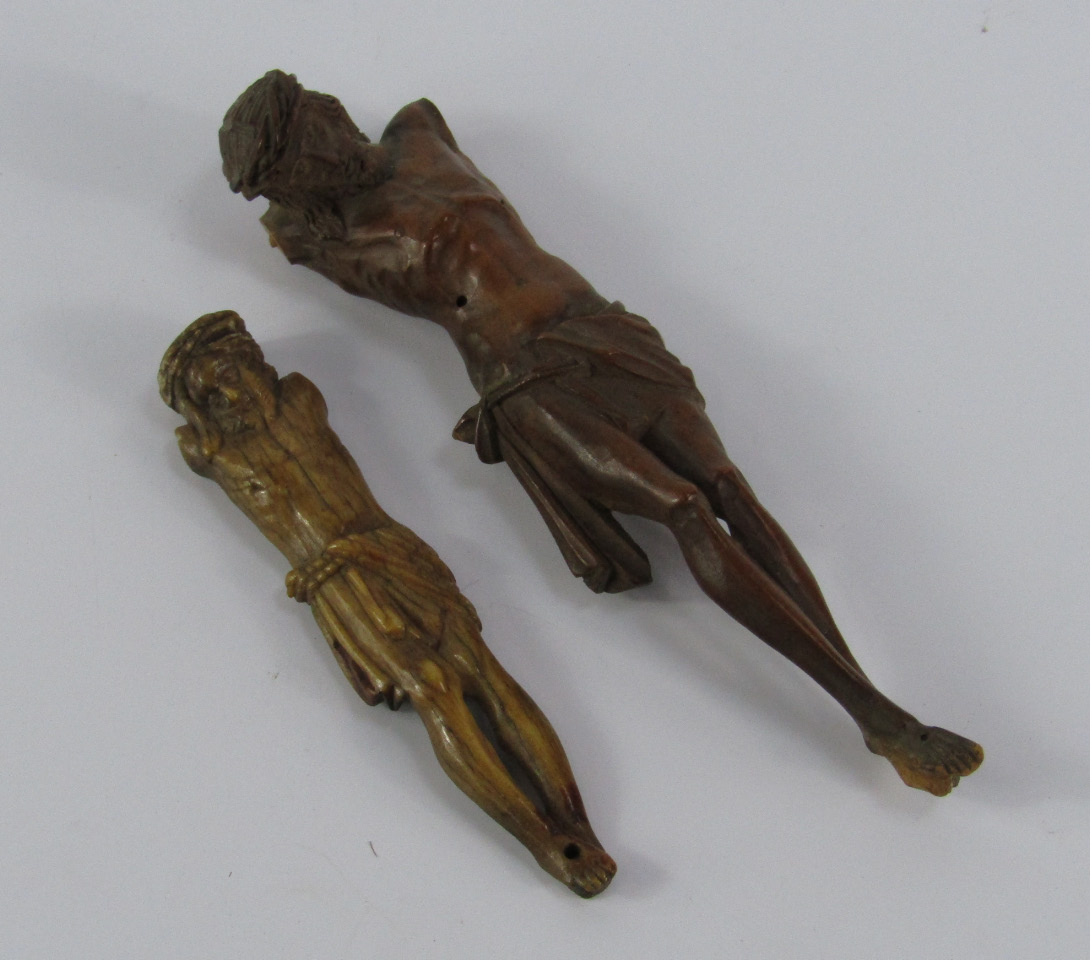 possibly 16th/17th century, one carved in bone, 10cm long, the other in fruitwood, 14.5cm long.