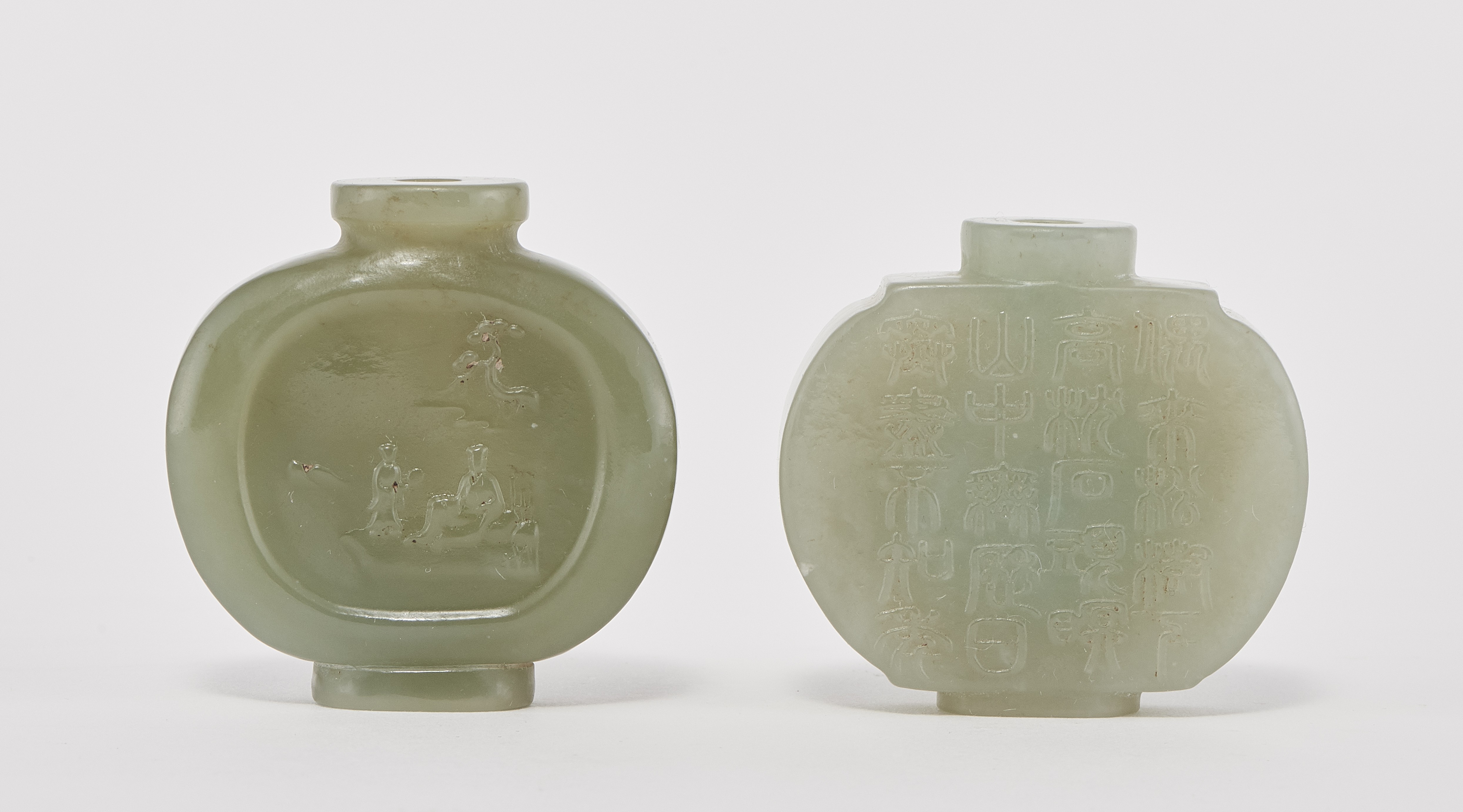 Jade with character motifs and calligraphy, H 5 and 5.5 cm