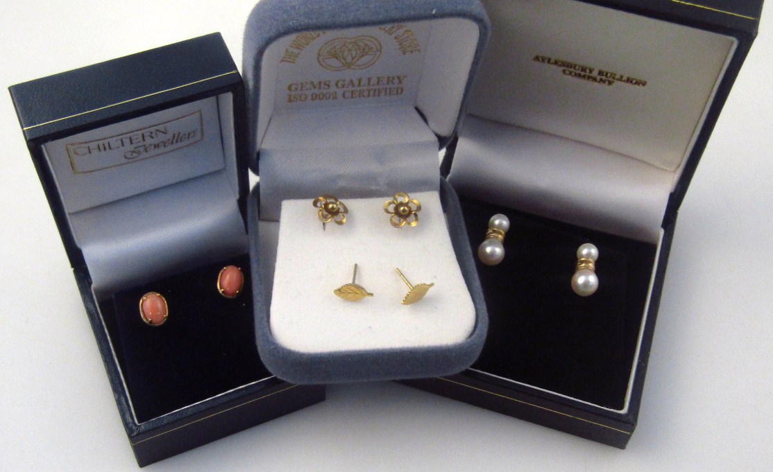 to include a floral example set each with pierced body, 1cm wide, unmarked yellow metal, etc. (a quantity)