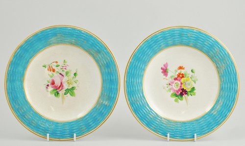 hand painted central floral decoration to a turquoise border, gilt detailing. (16)