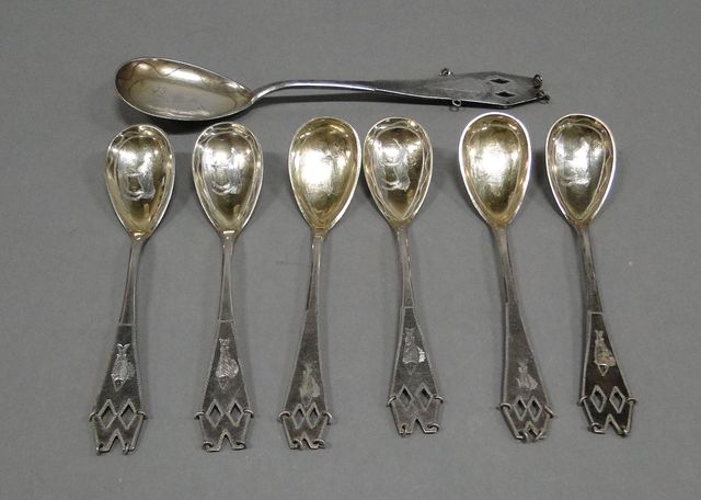 7st lappskedar, silver 1920-tal Haparanda, förgyllda skopor