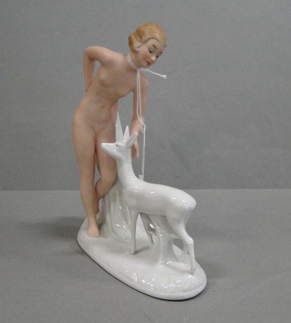 Wallendorf figurin, kvinna med rådjur, H21cm