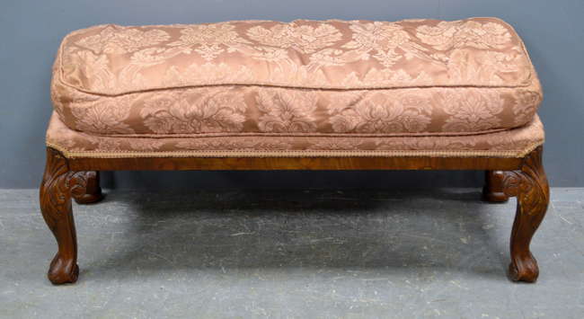 Walnut framed pink upholstered stool