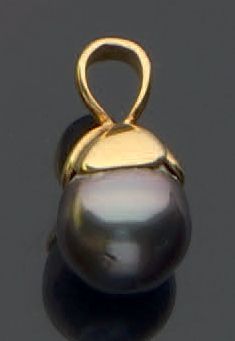 Yellow gold pendant, 750 MM, wearing a pearl of Tahiti, diameter: 11 mm, weight: 3,8gr. gross
