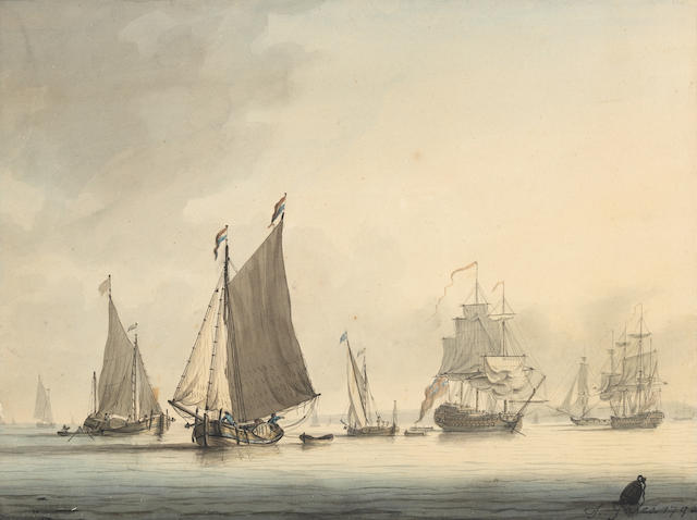 A frigate in Plymouth Sound; Shipping at anchor, Plymouth, a pair
