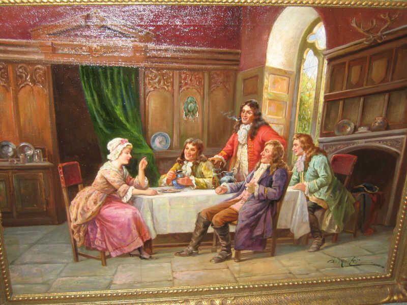 Elegantly dressed figures in an interior setting