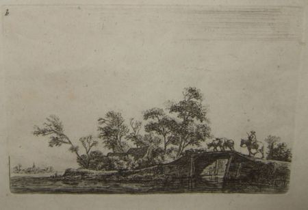 Drover on Horseback with Cattle on a Bridge