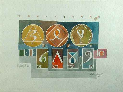 | Buchstabenbild aus dem "Europäischen Zyklus", bet. "Arabische Ziffern, Augsburg, um 1460" | |