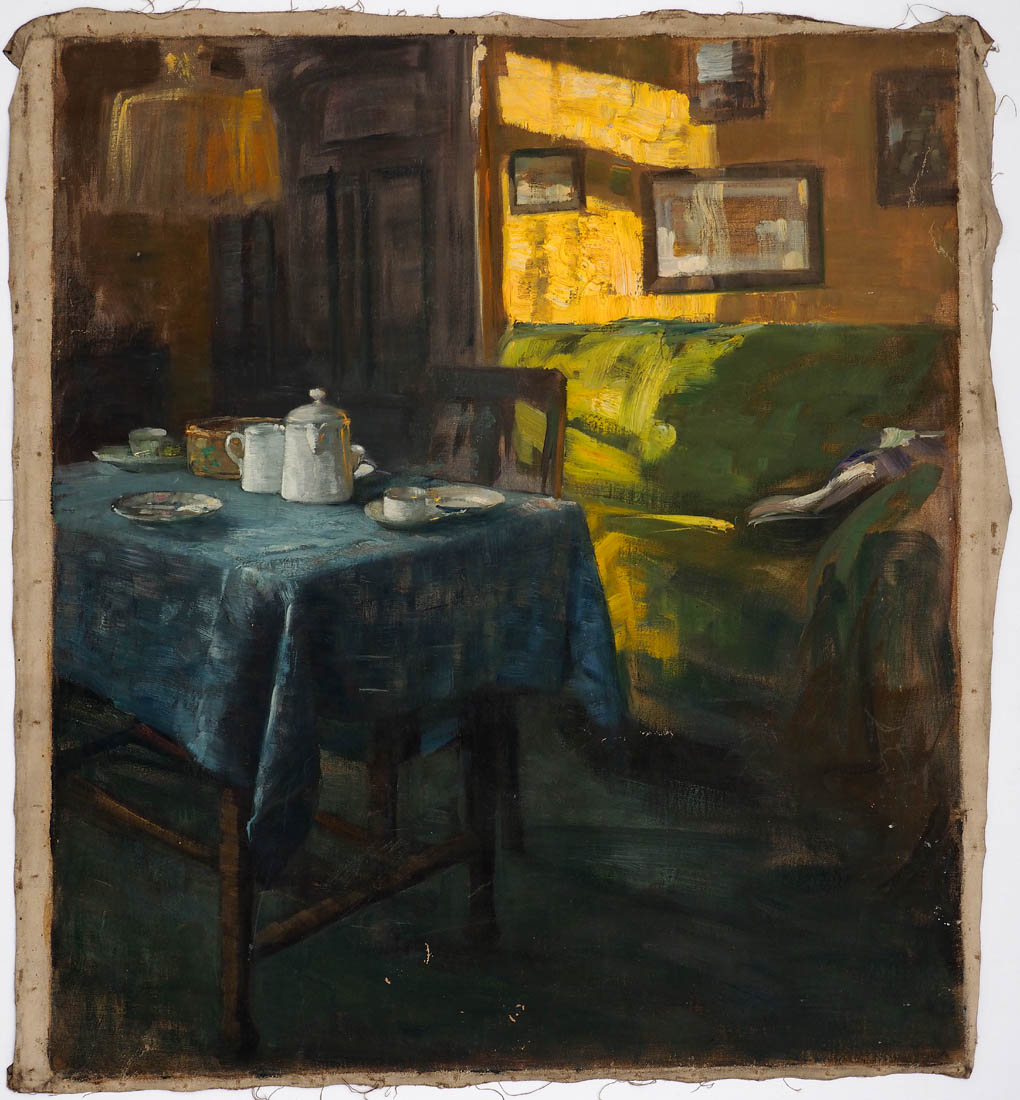Gedeckter Kaffeetisch in einem sonnendurchfluteten Wohnzimmer