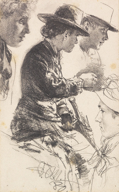 | Studie einer sitzenden Dame mit Hut, Schirm und Geldbörse | |