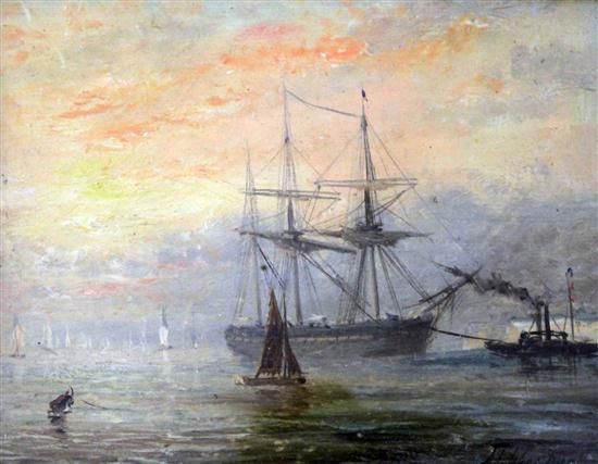 Steam tug towing a three master