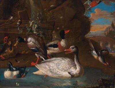 | A Norwegian White Goose with Ducks and other Birds in an Italianate Landscape | |