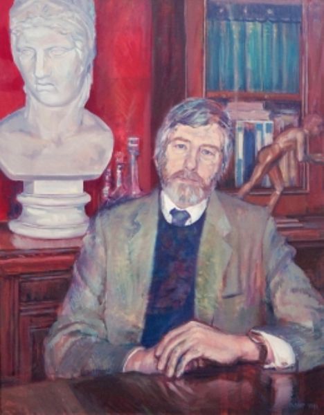 Portrait of Neville Hickman sitting in his library