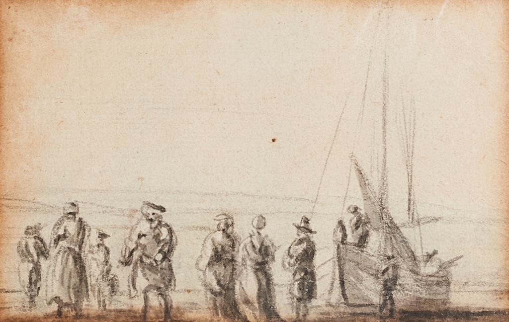 | Double Sided - Group of Figures by a Boat, A Walking Figure | |