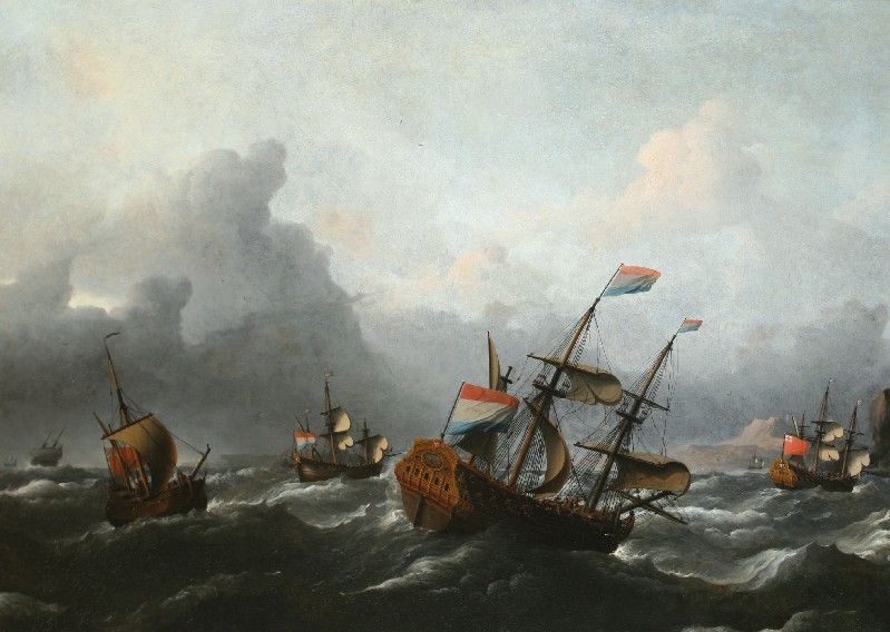 Dutch and English men of war near the English coast by stormy weather