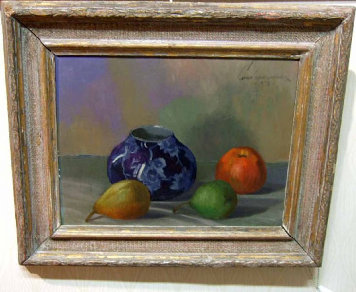 Stilleben med bojan och frukt
