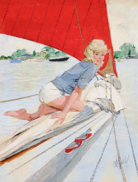 Blonde Pin-Up on Sailboat