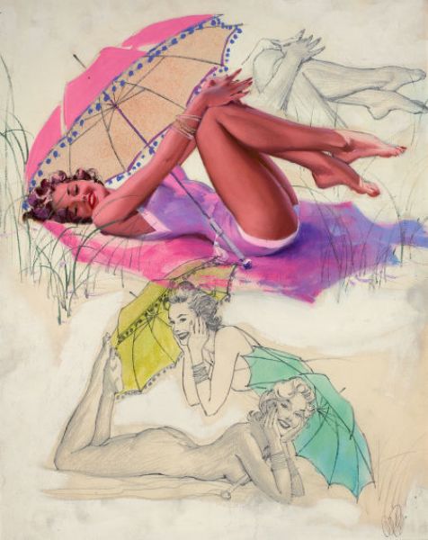 Pin-Up with Umbrella, Al Buell's Beauties, July Brown & Bigelow