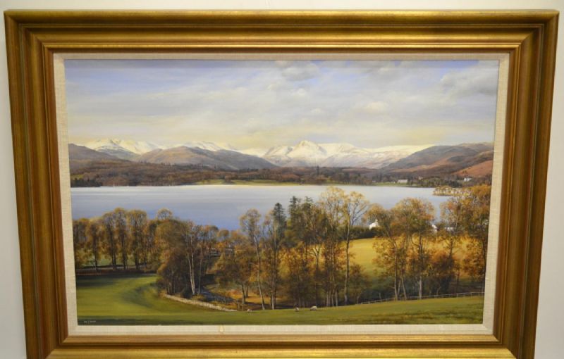 Windermere from Ambleside with Langdales in the snow