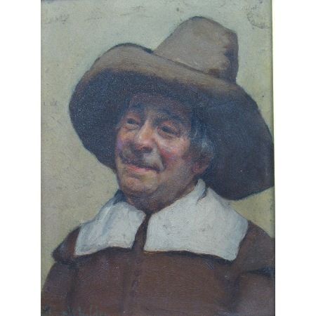 Head and shoulder portrait of a man wearing a wide brimmed hat