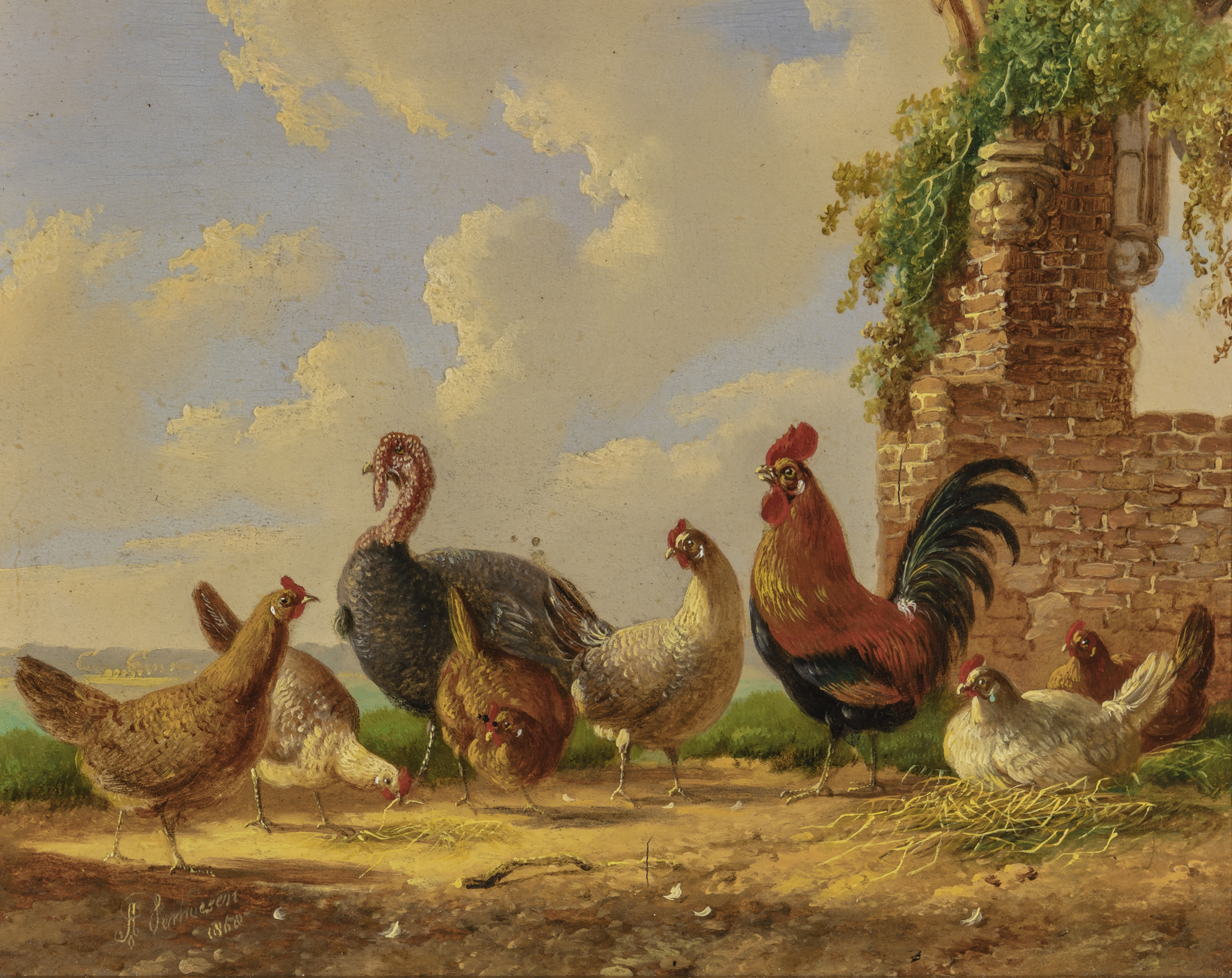 | Chicken, Hen and Turkey Gathered in a Landscape (1868) | |
