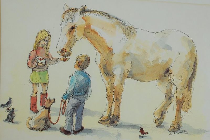'Two Children feeding a horse' and 'Tramps'