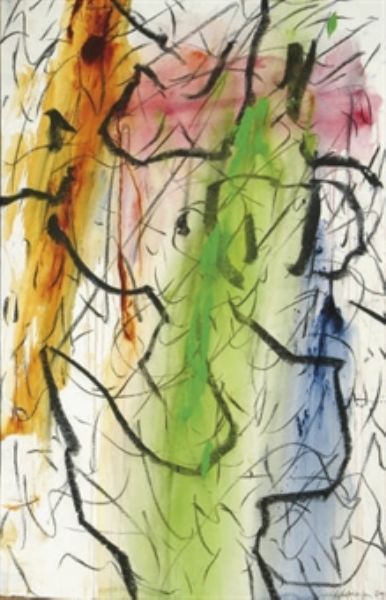 Watercolor oil, and pastel on paper