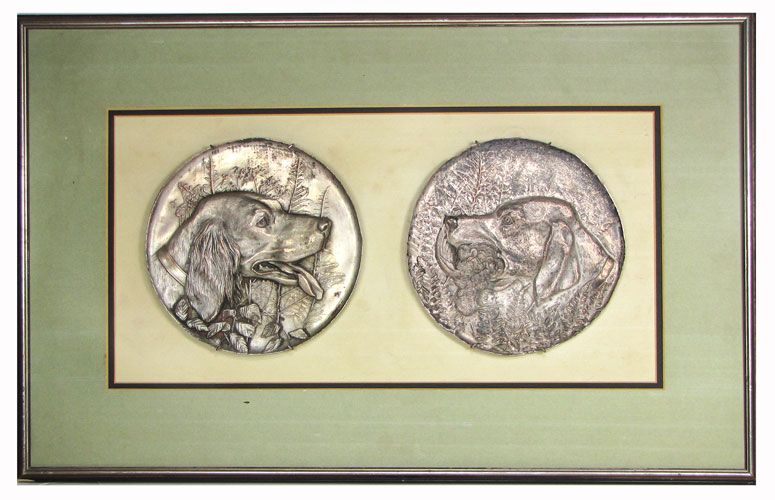 2 hunting dogs, one with bird in mouth