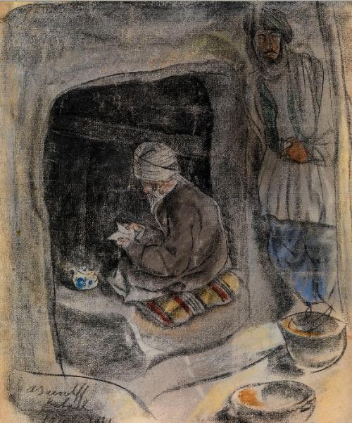 Charcoal pastel and sanguine on paper, laid on cardboard