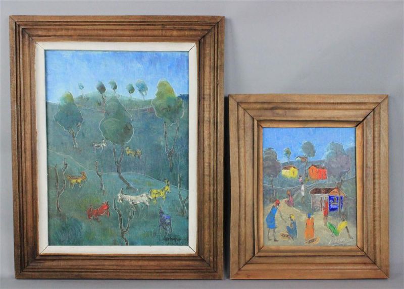 GOATS ON THE HILL SIDE and VILLAGE SCENE
