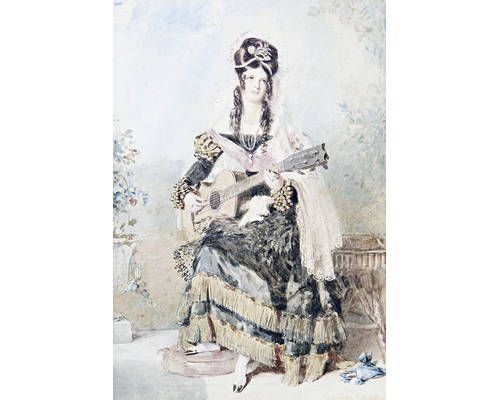 A Spanish lady playing a guitar