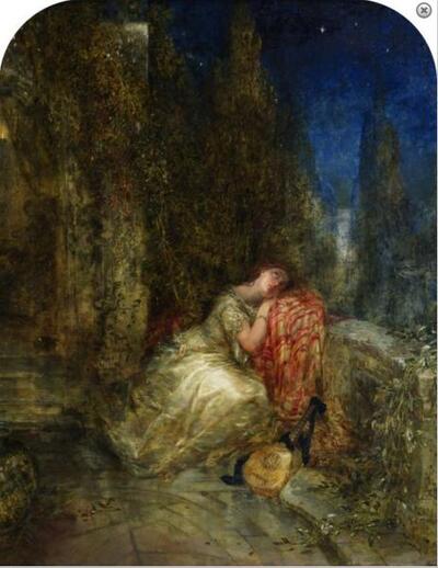 | Lady in a garden at twilight | |