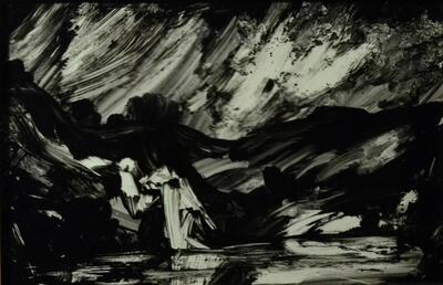 | Painting black ink and watercolour on glass, | |