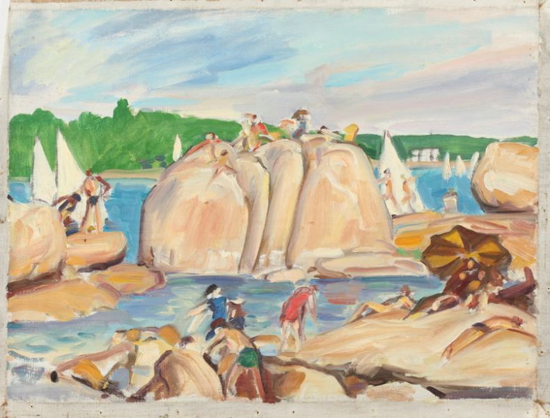 FIGURES ON ROCKY SHORE