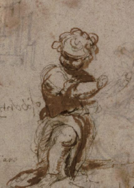 | Pen and brown and black ink, brown wash | |