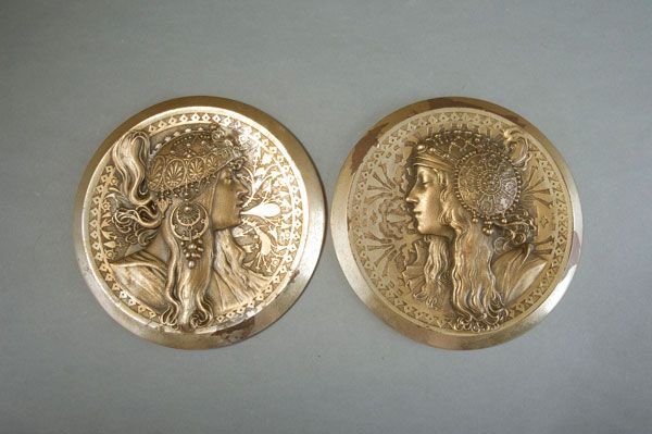 Paar Plaketten 'Byzantinische Köpfe Braun und Blond', 1897