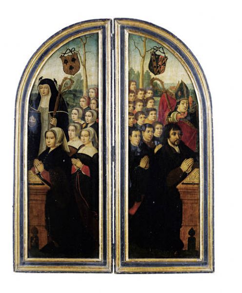 | Donors in prayer, accompanied by their family, Saint Irmengard (?) and Saint Denis | |
