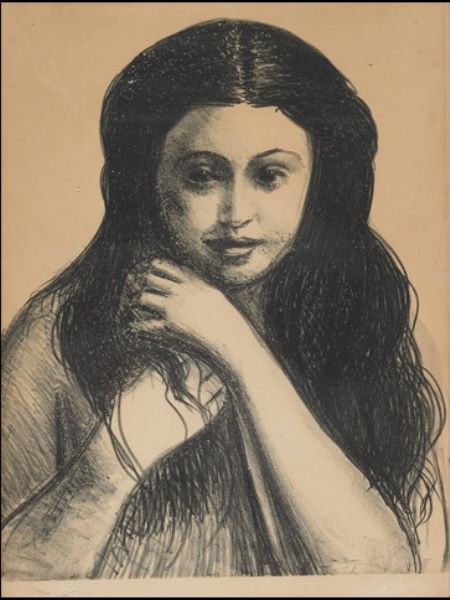 HEAD AND SHOULDER STUDY OF WOMAN WITH LONG HAIR