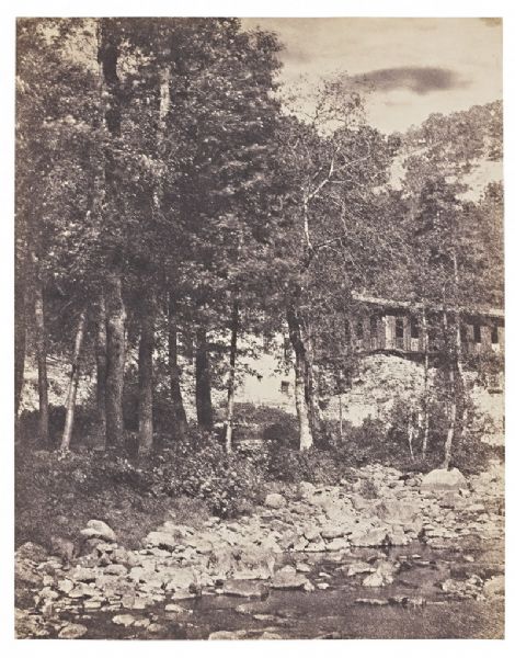 | Groupe d’arbres et bâtiments au bord de l’eau, France | |