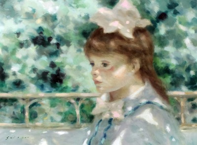 | "The Day Dreamer" - Shoulder-length portrait of a young girl on a terrace | |