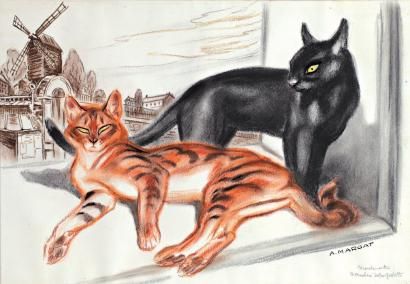Deux chats au Moulin de la Galette